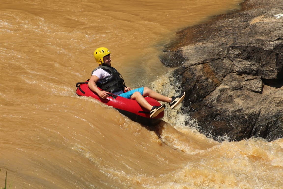 Os participantes recebem colete flutuante e capacete. A atividade se inicia em um trecho de remanso tranquilo onde os participantes aprendem a conduzir e se posicionar em uma boia individual com auxilio dos instrutores, remando até o percurso com ondas e pequenos refluxos. Passa pela Corredeira Monjolinho, onde suas quedas nos permite realizar várias atividades extras como, escorrega, surf, natação livre e muito mais. E no final da atividade os participantes retornam caminhando por uma trilha.
