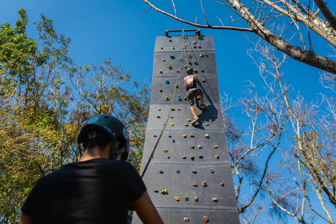 O condutor equipa o participante, orienta e faz a segurança durante a atividade.